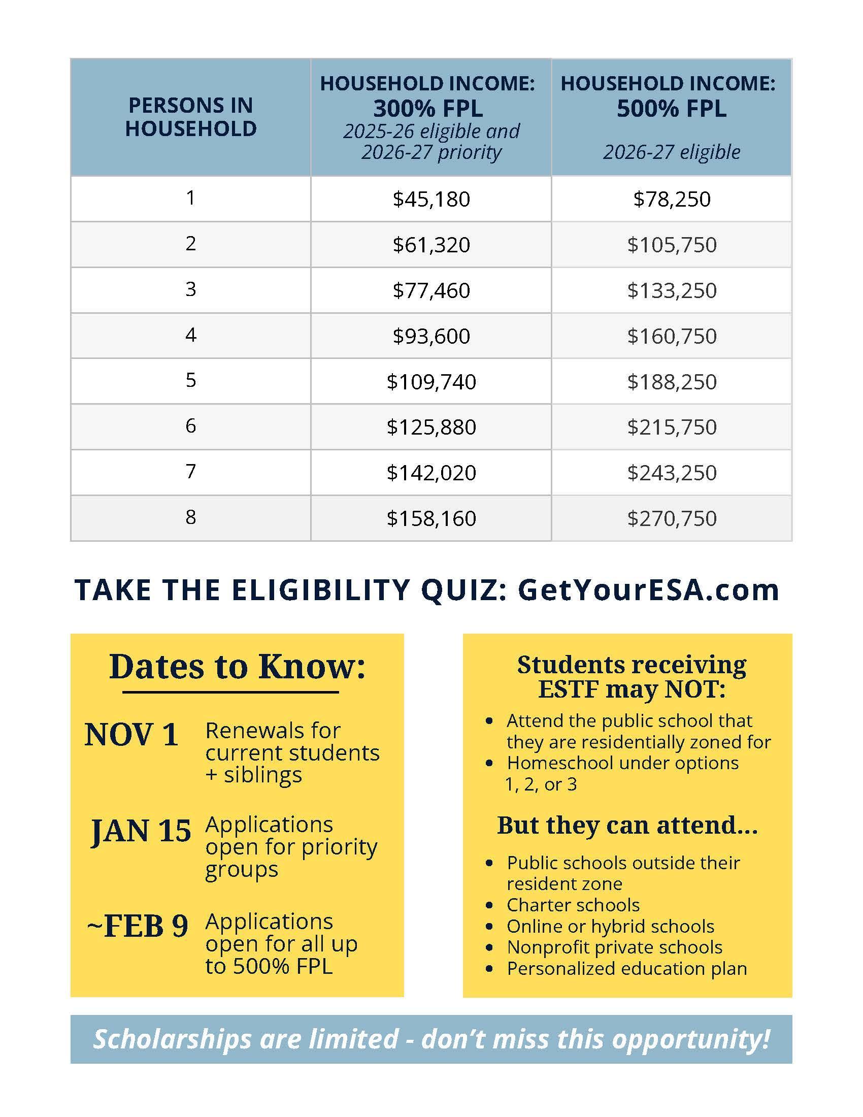 We'll walk through what the program is, who is eligible, how to apply, and how parents can prepare in advance to make sure their application is among the first in line. Whether you are a 2025-26 ESTF recipient needing to renew your participation for next year, or whether you are a family looking at applying for ESTF for the very first time, this meeting is for you! RSVP here.